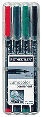 【メール便可】 ステッドラールモカラーペン 油性 超極細書きS(線幅 0.4〜0.45mm) 4色セット レッド、ブルー、グリーン、ブラック 【ラインマーカー】【ライナー】【細書ペン】【ミリペン】